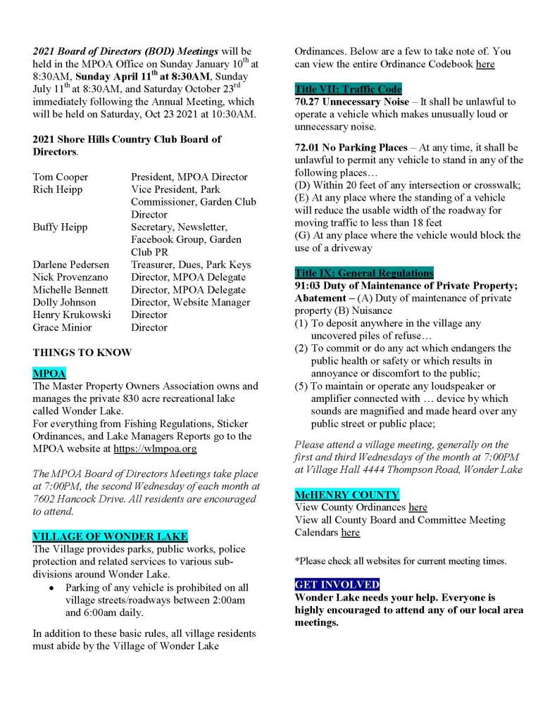 Some of the topics addressed include: the 3rd Annual Spring Park Beautification, the first 2021 Garden Club meeting, private parties in the park pavilion, a possible Garden Walk, Independence Day celebrations, and more.